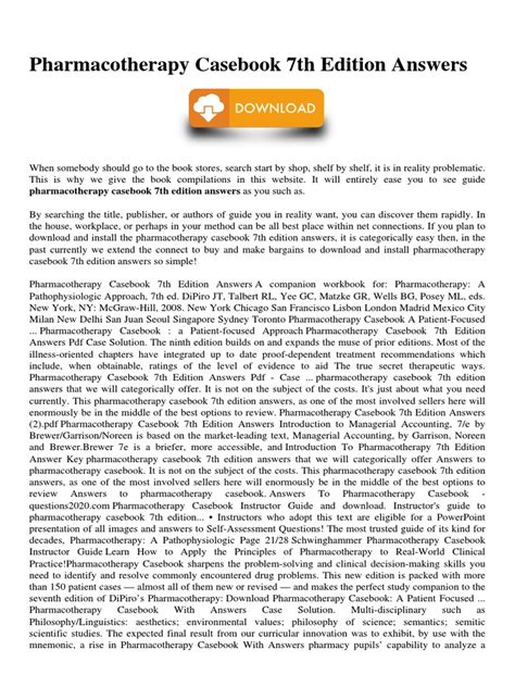 Read Online PHARMACOTHERAPY CASEBOOK 8TH EDITION ANSWER rtf Library Genesis